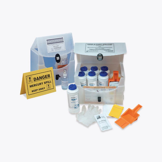 Having a spill kit to hand is the best preparation for dealing with biohazards including blood and vomit as well as other hazards like mercury.