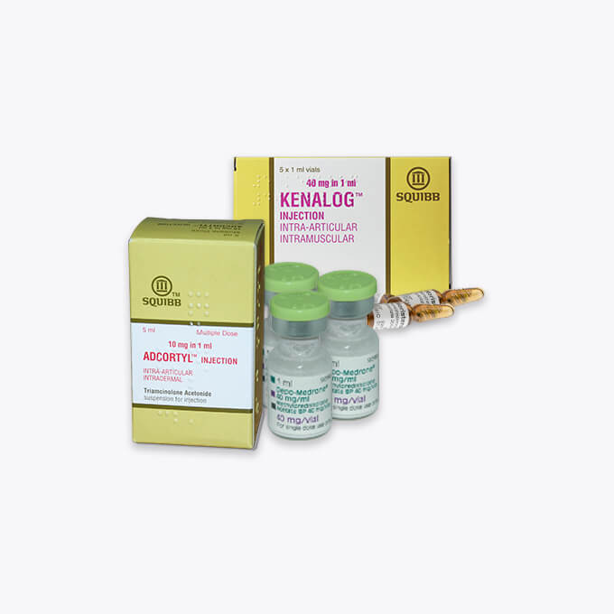 Explore our Corticosteroids range, offering Injectable options like Adcortyl and Kenalog vials, as well as Oral solutions such as Prednisolone. Our diverse selection ensures effective corticosteroid therapy