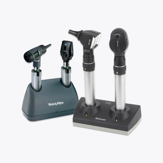Otoscope and Ophthalmoscope rechargable desk-sets from Welch Allyn and Keeler
