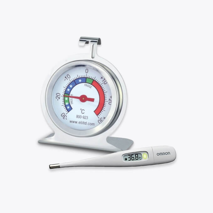 Here you'll find oral thermometers as well as fridge and freezer thermometers